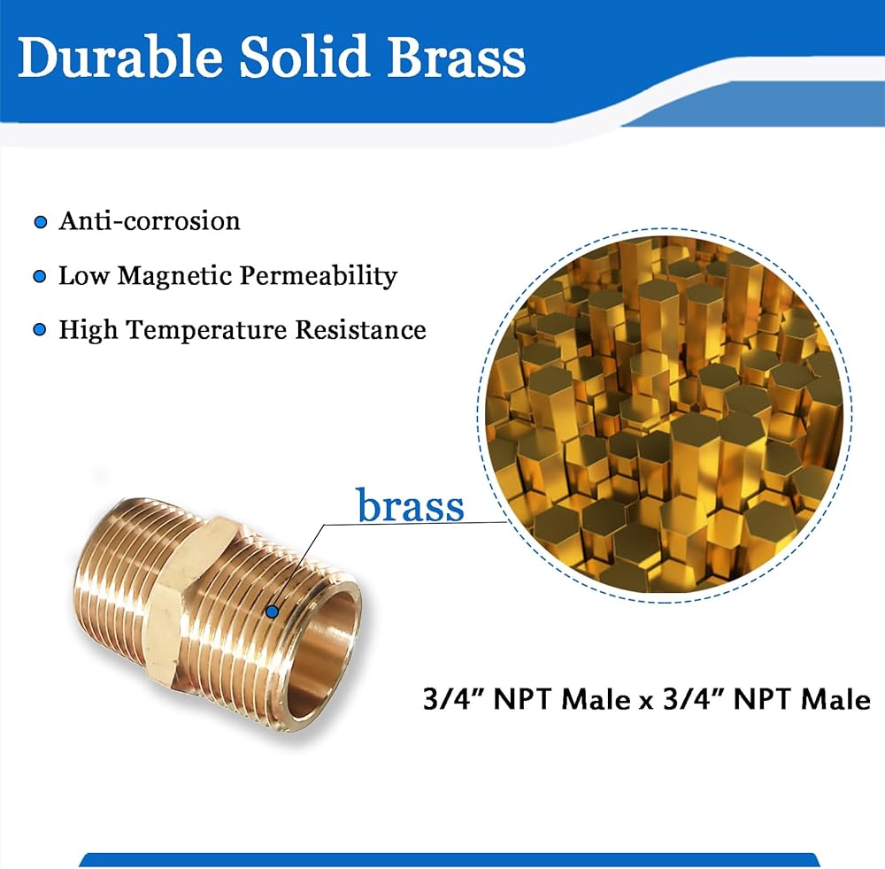 【Premium Solid Brass Nipple】: Quirkmyn 3/8 " hex brass nipple is crafted with high-quality solid brass, ensuring durability and longevity.Our hex brass coupling meets industry standards for quality and reliability. Rest assured knowing that our product has undergone rigorous testing to ensure superior performance.