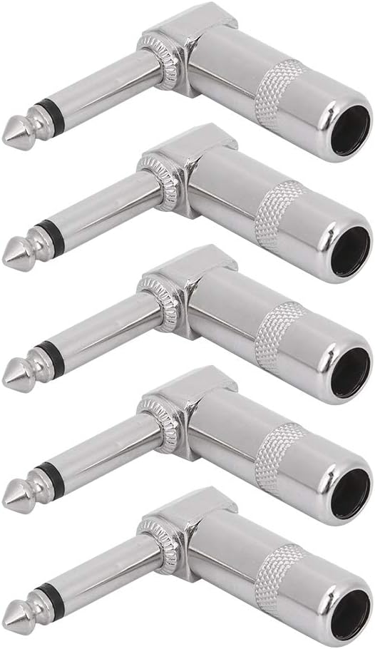 PACKAGE INCLUDING: You will receive 5 x Audio 1/4" 90 Degree Right Angle Plug. Nickle plated surfaces to prevent rust and keep bright and clean.