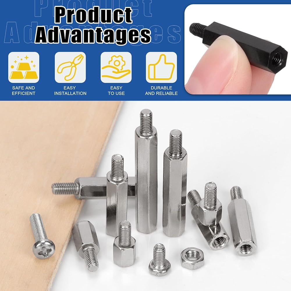 ☛ Male-female metric thread mount spacer screws are made of high quality carbon steel, nylon and brass material, corrosion and rust resistant and durable.