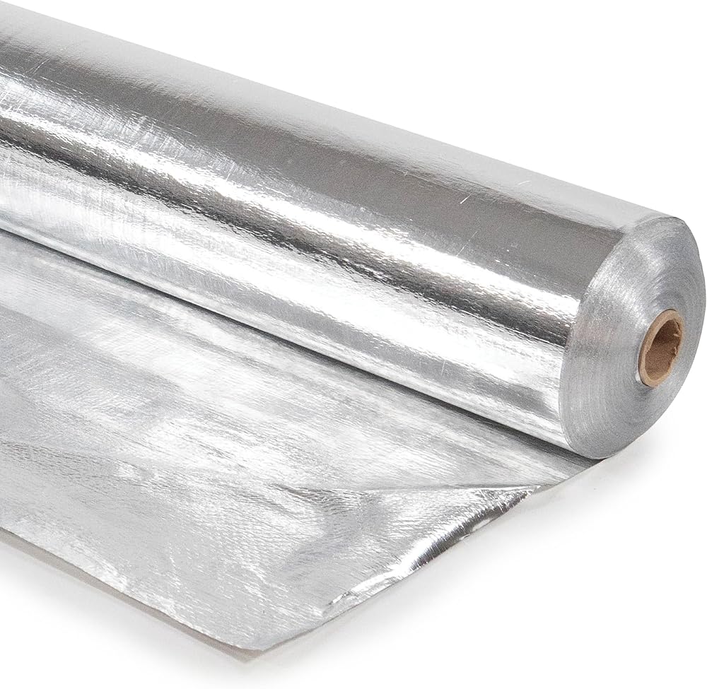 SPECS - Dimensions: 4' x 125' | Square Footage: 500 sq. ft. | Polyethylene Bonded to 2 Radiant Barrier Sheets | Reflects 97%, 3% Emissive | Class 1 / Class A Fire Rating | Tear Resistant | Non-Toxic, Non-Carcinogenic, Fiber Free, No Off Gassing