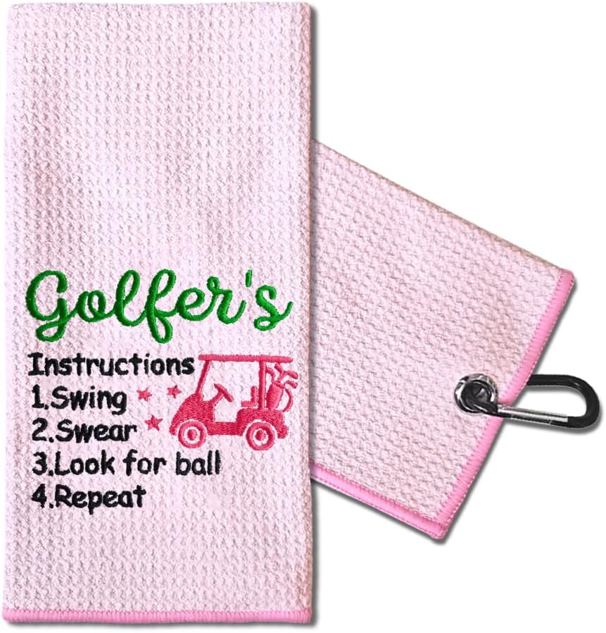 TOUNER Retirement is Just More Time to Play Embroidered Golf Towels for Golf Bags with Clip, Funny Pink Golf Towel Gifts for Golf Fan Wife Women, Golf Accessories for Women, Retirement Birthday Gifts in Kuwait