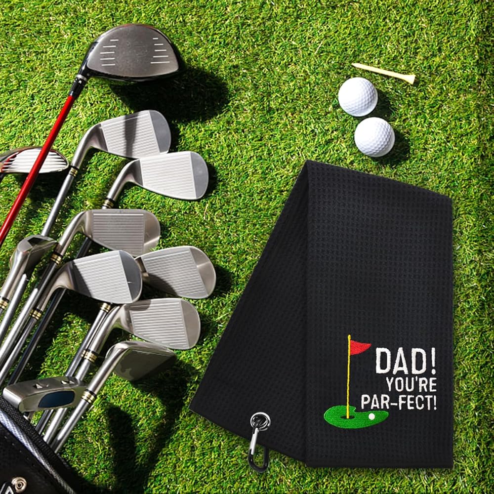Hafhue Dad You're Par-FECT Embroidered Golf Towel, Dad Golf Towel, Golf Accessories for Men, Golf Gift for Dad Grandpa, Birthday for Dad Grandpa Golf Fan, Retirement Gift for Dad