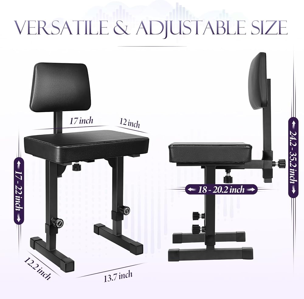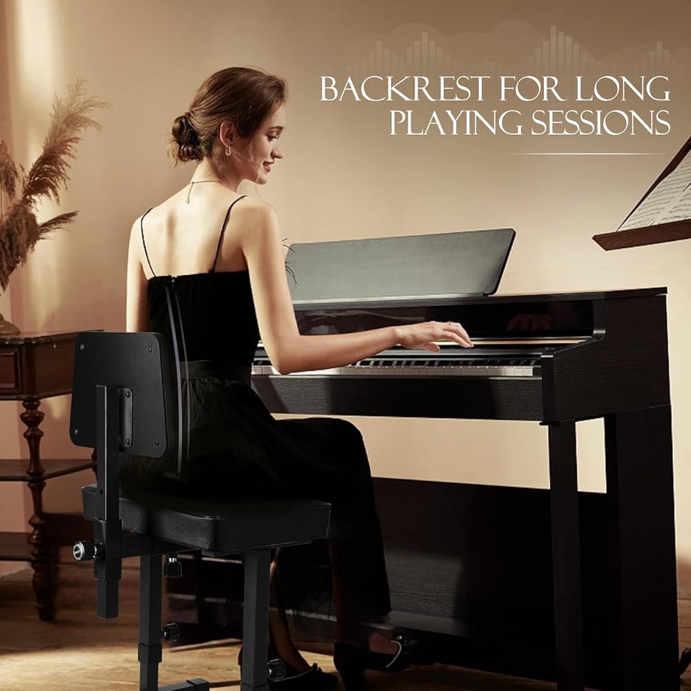 MULTI-PURPOSE PIANO STOOL: Multi-purpose adult and children's piano stool, not only can be used for long hours of playing on multiple instruments, but also for music practice during parent time, the adjustable piano bench has a backrest to improve posture and back comfort. This sturdy and durable professional piano seat is the best choice for musicians, home users and studio owners when playing.