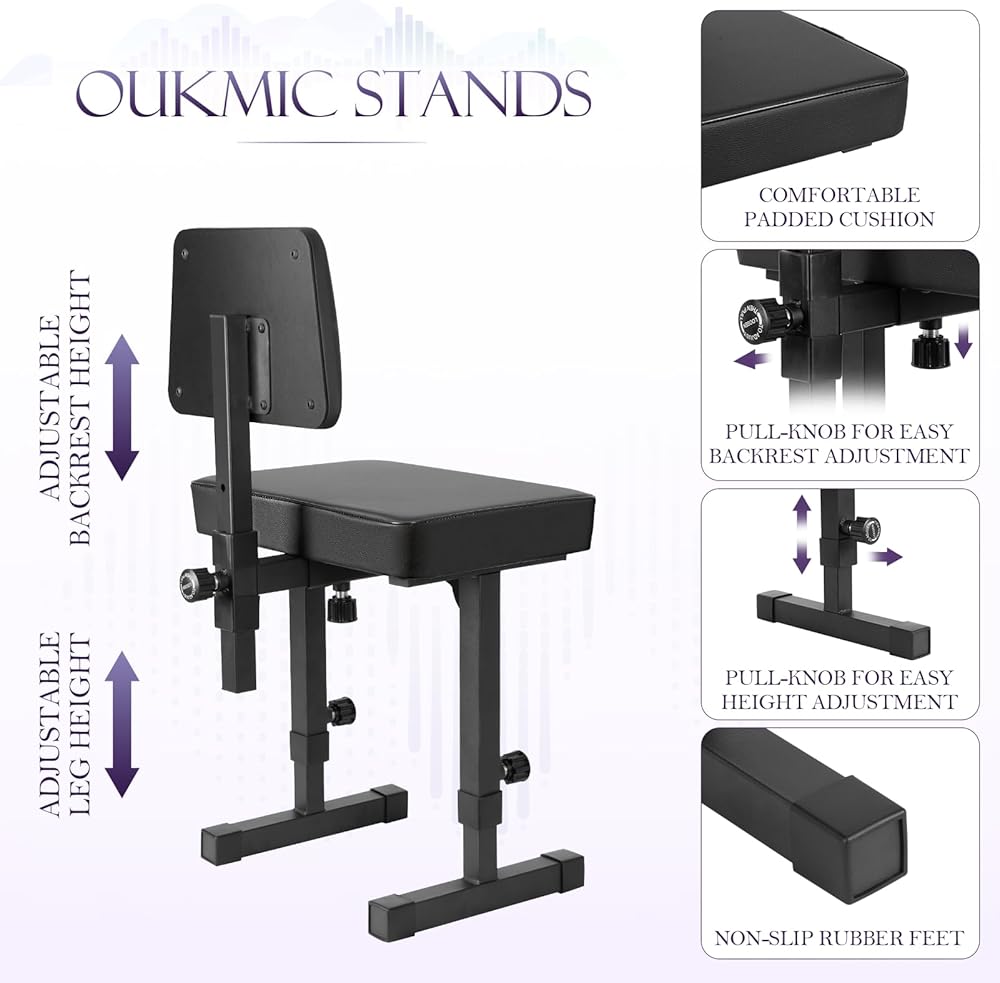 COMFORTABLE PADDED SEAT - The OUKMIC keyboard stand bench with ergonomic soft backrest keeps you comfortable during long hours of playing. The piano stool with plush padded seat provides excellent support and comfort, while being water and stain resistant and easy to care for.