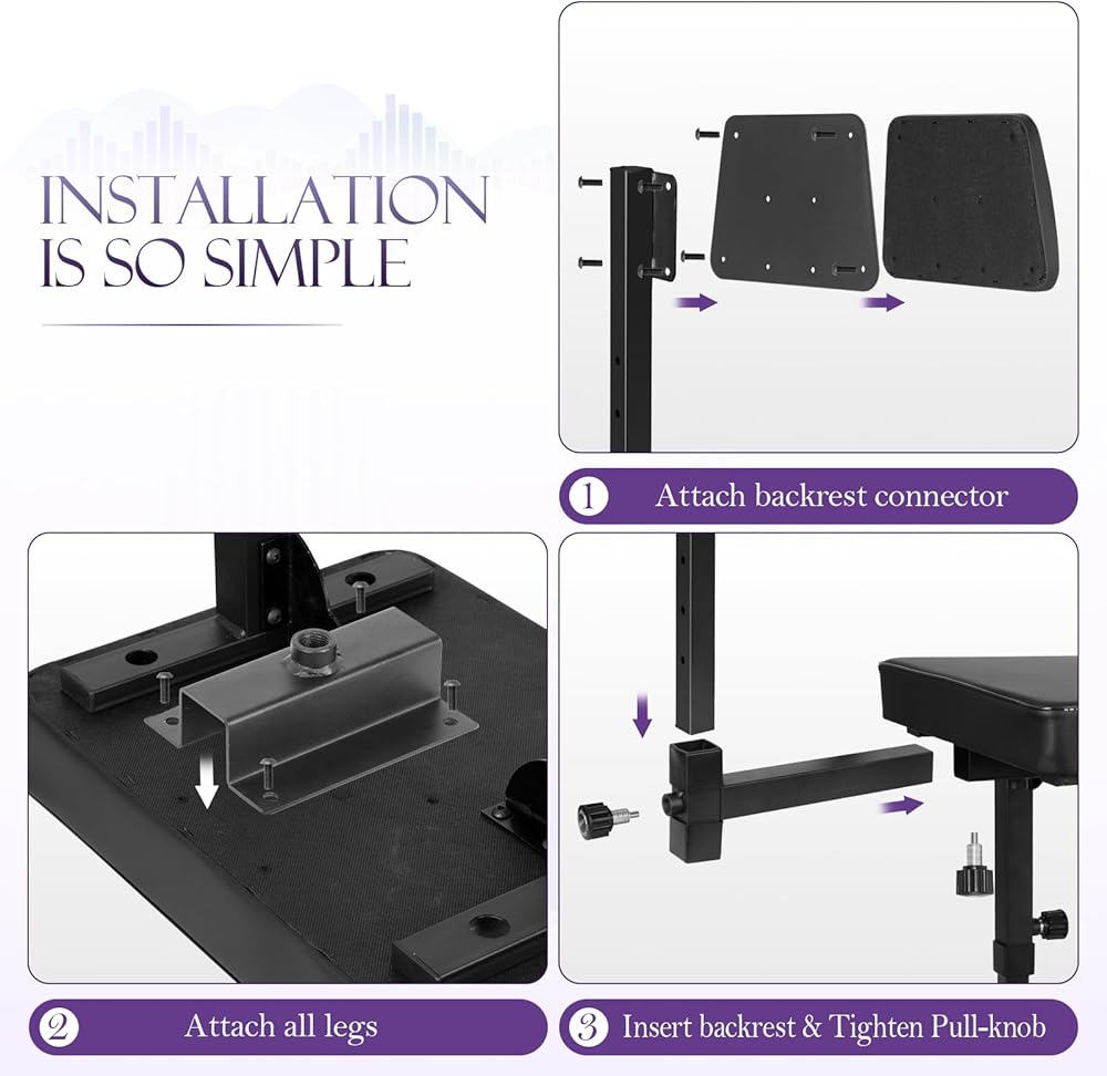 HEIGHT ADJUSTABLE - This bench with backrest adjusts in 1-inch increments from 16.5 inches to 21.3 inches with six height steps to accommodate different heights and playing styles, ensuring you are at the right height, whether you are using it as a piano bench or a wide large keyboard bench.