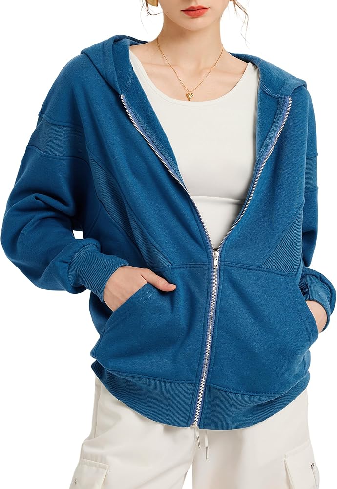 TAKEYAL Women Hoodies Sweatshirt Long Sleeve Zip Up Oversized Fall Jackets Casual Trendy Top