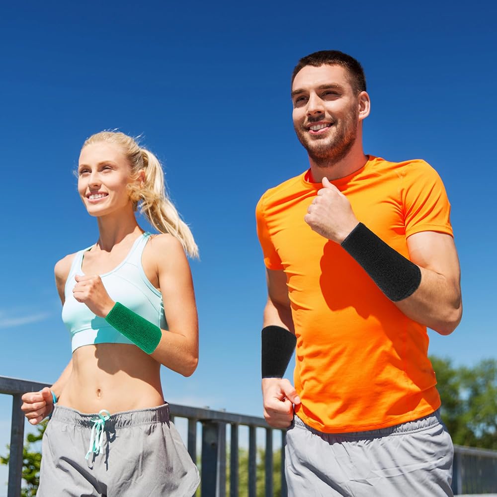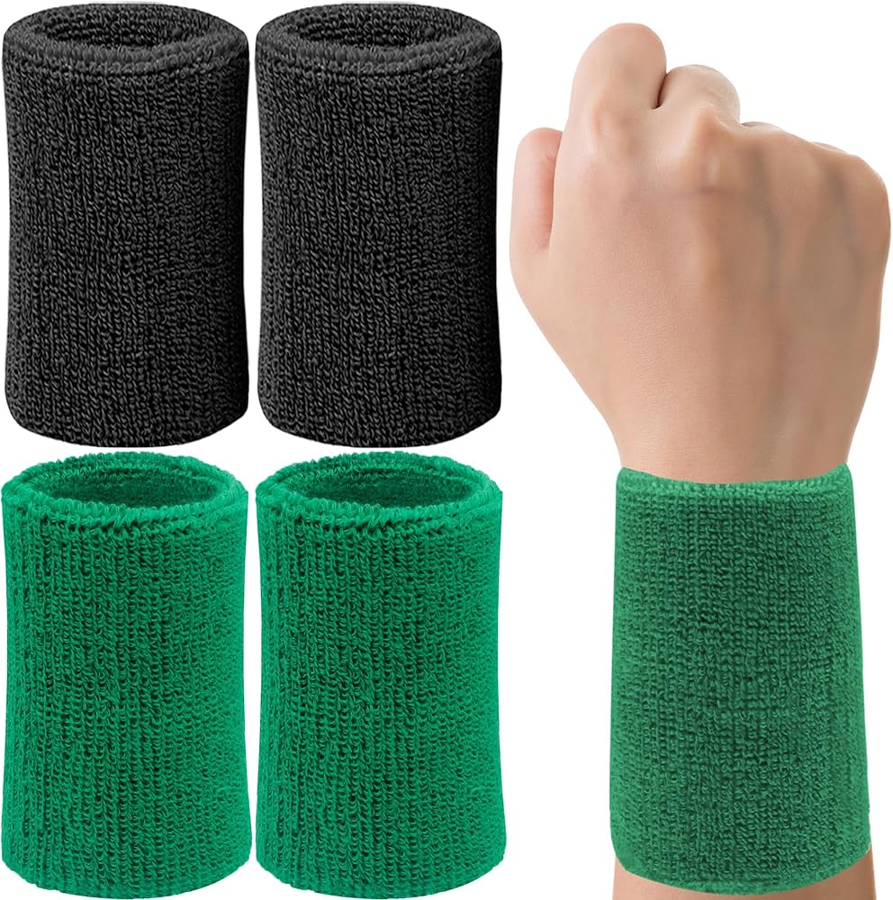 6 Inch Wrist Sweatbands Tennis Wrist Bands Absorbent Sweat Band for Men and Women Sport Long Wrist Bands, Breathable Cotton Athletic Sweatbands for Basketball, Workout, Running (4 Pack) -Light Camel