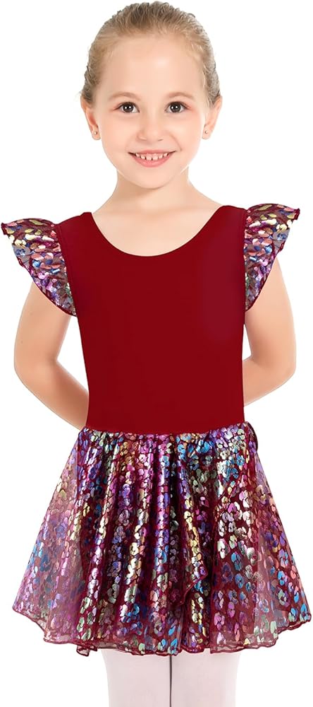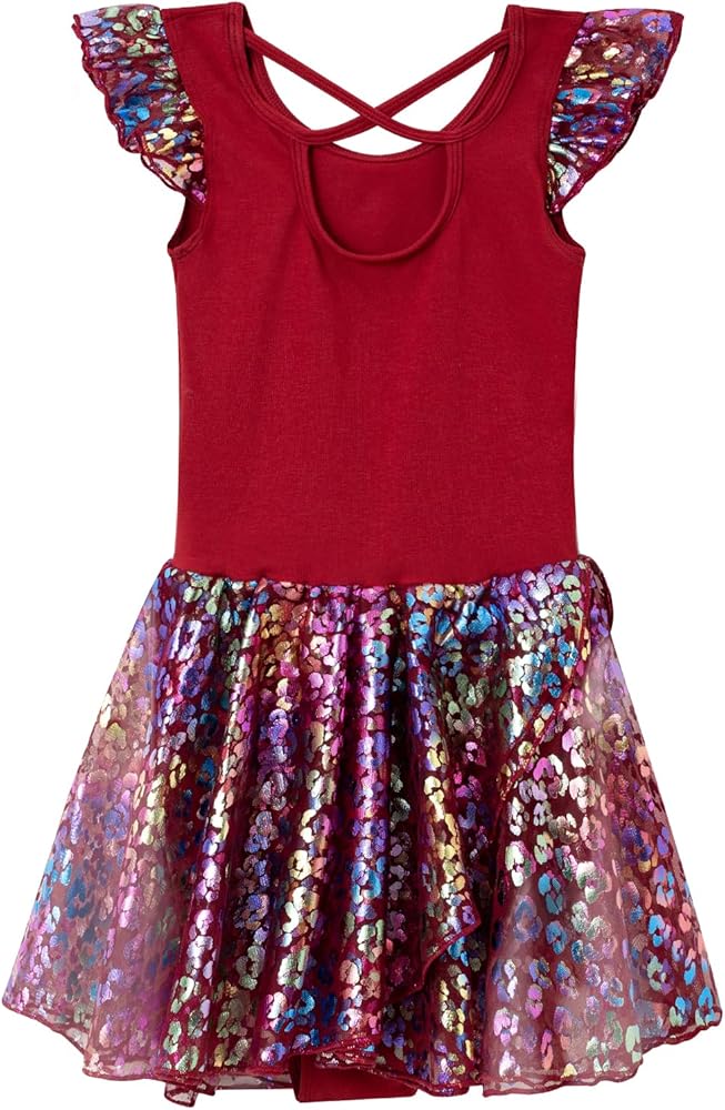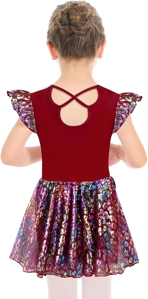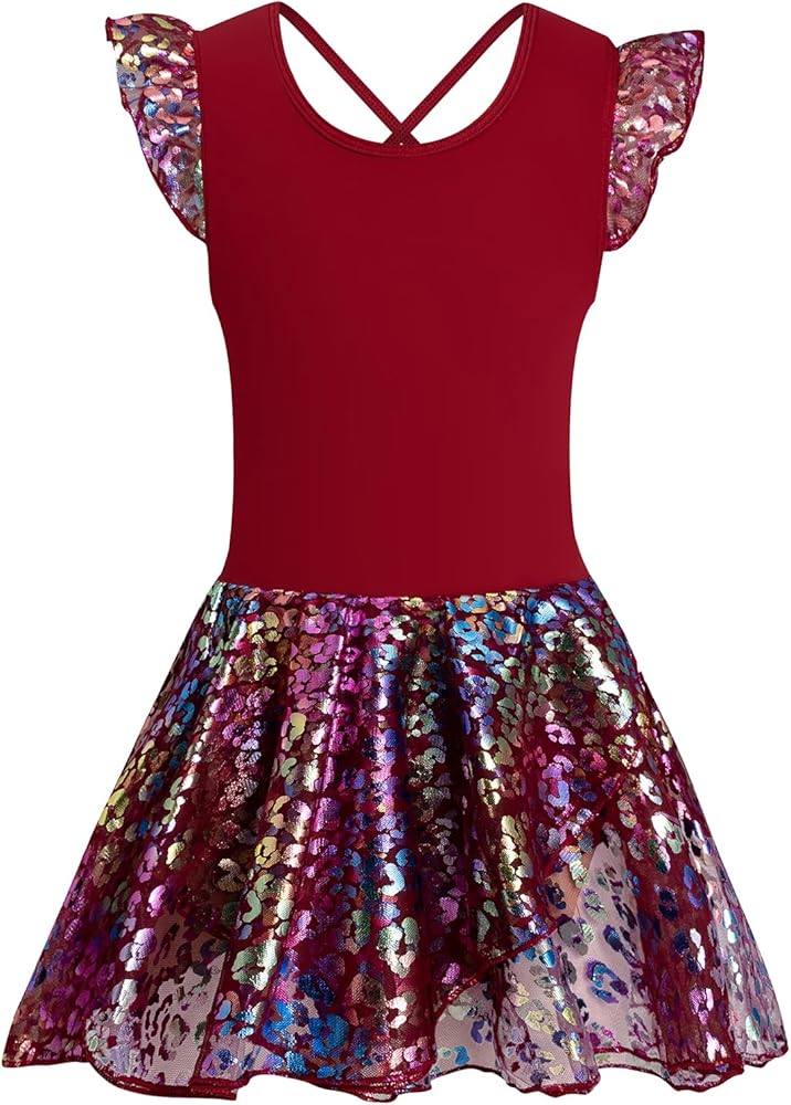 Delight your little dancer with this adorable flutter sleeve criss-cross back dress! Designed with a leotard style, it features an enchanting mouse ear cutout detail that adds a touch of whimsy. The flowy flutter sleeves and criss-cross open back offer freedom of movement, allowing your child to twirl and leap with ease. Crafted from high-quality, breathable fabric, this dress ensures lasting comfort during dance classes or playtime. Available in a range of vibrant colors, it's the perfect choice for your budding ballerina. With its playful yet elegant design, this dress is sure to make your little one feel like a true prima ballerina on stage or at home. Easy to slip on and off, it's an ideal pick for busy dance schedules. Embrace your child's love for dance and let their creativity shine in this delightful flutter sleeve criss-cross back dress.