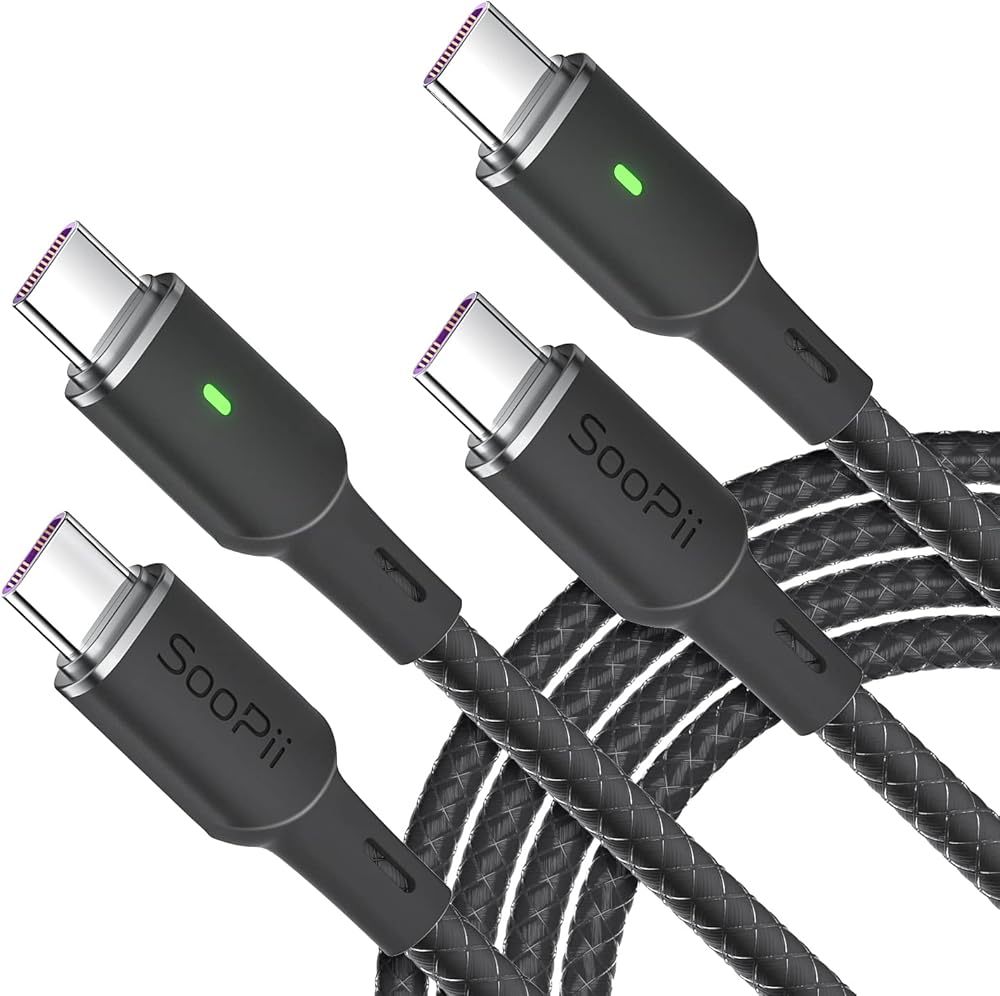 SOOPII 100W PD USB C to USB C Cable, [2-Pack 6.6ft] Type C Cable with Smart LED Indicator for lPhone 15/15 Pro/15 Plus/15 Pro Max, lPad Air/lPad Pro, MacBook Pro,Galaxy S23/S10/S9/Plus……