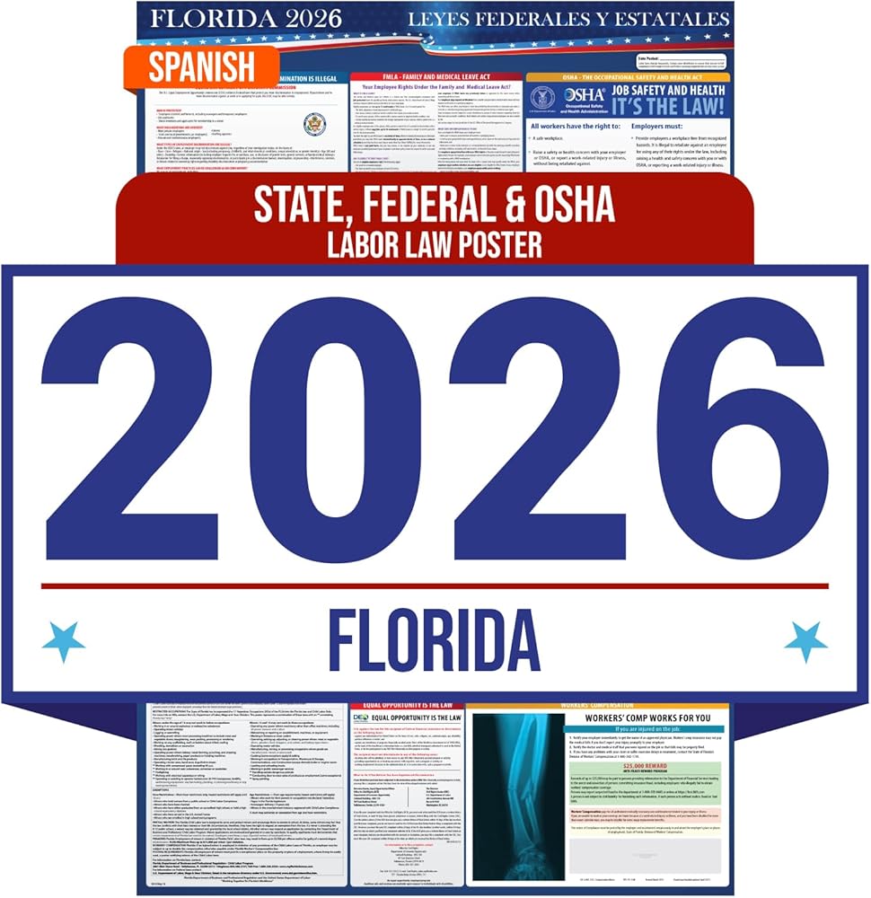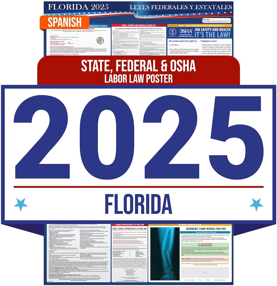 ✓ Essential Compliance Requirement: Displaying the Florida 2025 Labor Law Poster in a visible area is legally required to avoid fines, lawsuits, and penalties, ensuring your business meets posting regulations. Failure to comply with posting regulations can result in large penalties and fines. Compliance Audit Center state and federal labor law posters are approved for small, medium, and large businesses. Let us worry about compliance and you focus on your business.