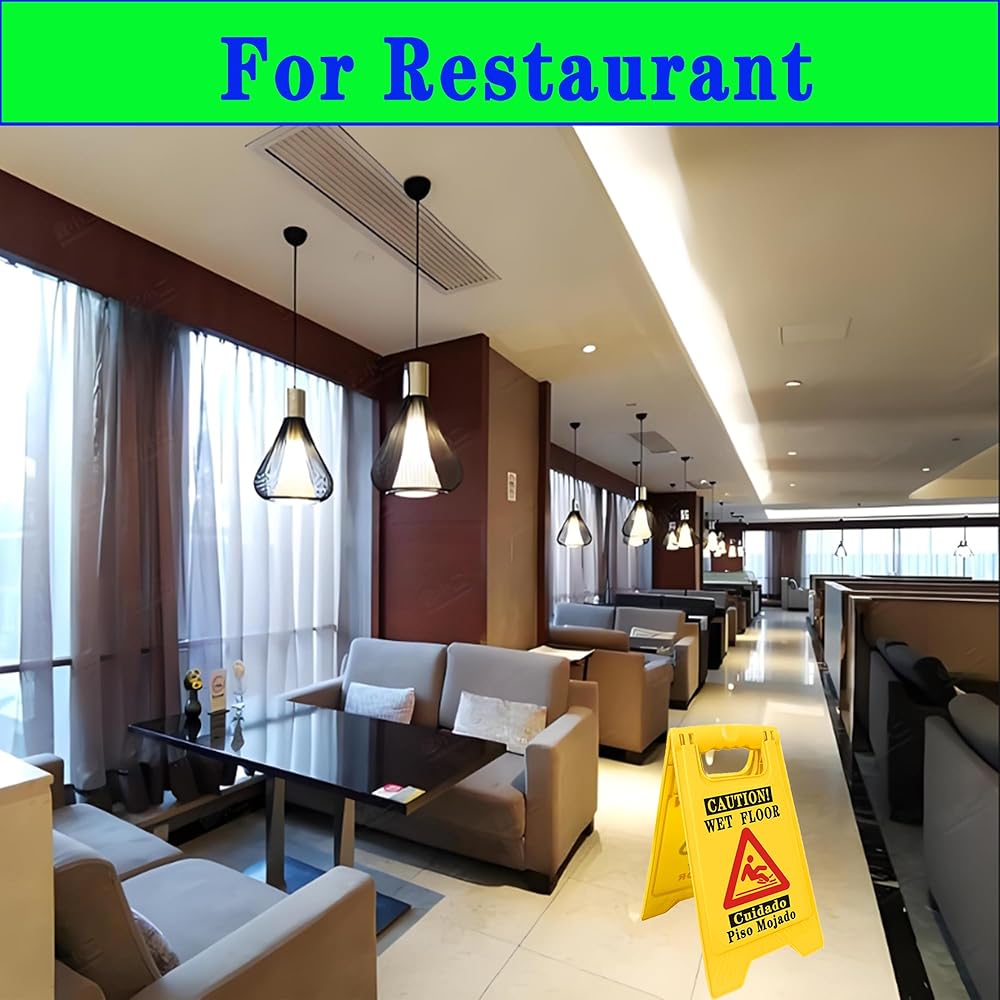【 Conspicuous Warning】:16.6Inches Bright yellow plastic caution wet floor sign with Falling Person Icon, People can read from far away. Ideal for Floors, Doorways, Walkways, Hotel, School, Cinema, and Shop -Multiple signs are required for each wet floor entryway.(1 pack)