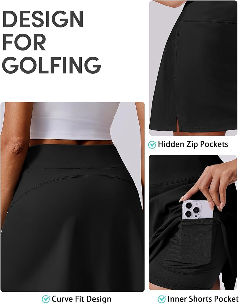 Pocket Design: This athletic skirt with mesh shorts underneath includes two hidden zip pockets and inner pocket, making it a practical choice for skorts for women with pockets. Store essentials securely while enjoying golf skirts for women activities and casual outings.
