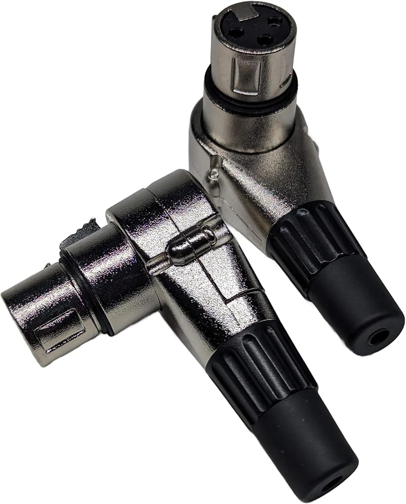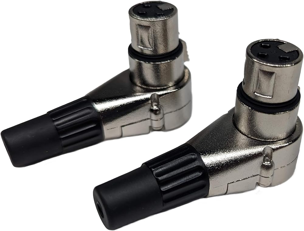 Milestock 2-Pcs 3-PIN XLR Male Adjustable Right Angle Adapter, 7 Position XLR Plug, 3 Pin Mic Microphone Speaker Audio Cable Connector. This cable connector offers features which make it more reliable, easier to assemble, and improves contact integrity as well cable strain relief. 7 selectable cable outlet positions.