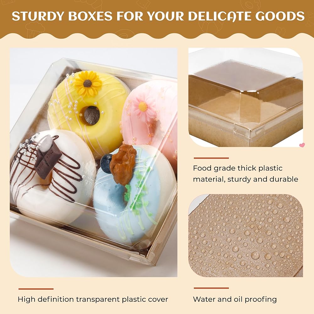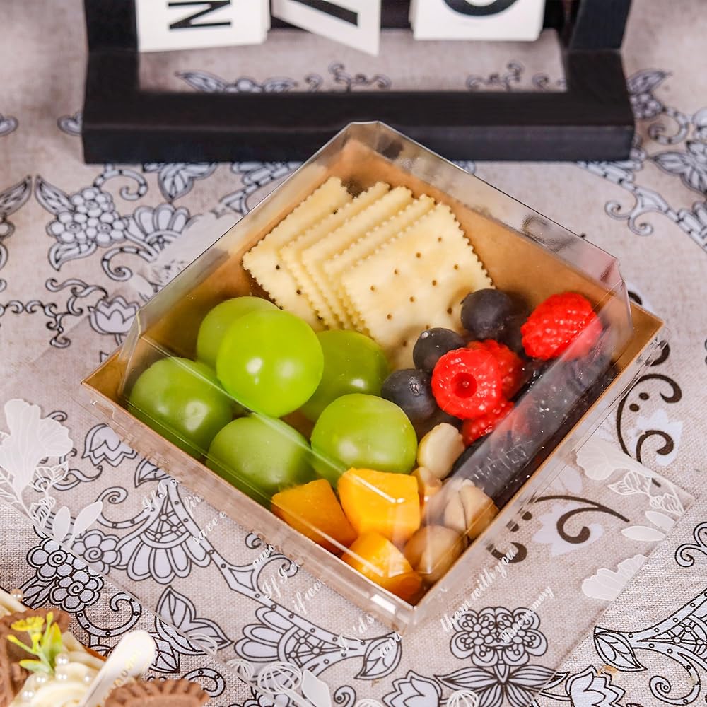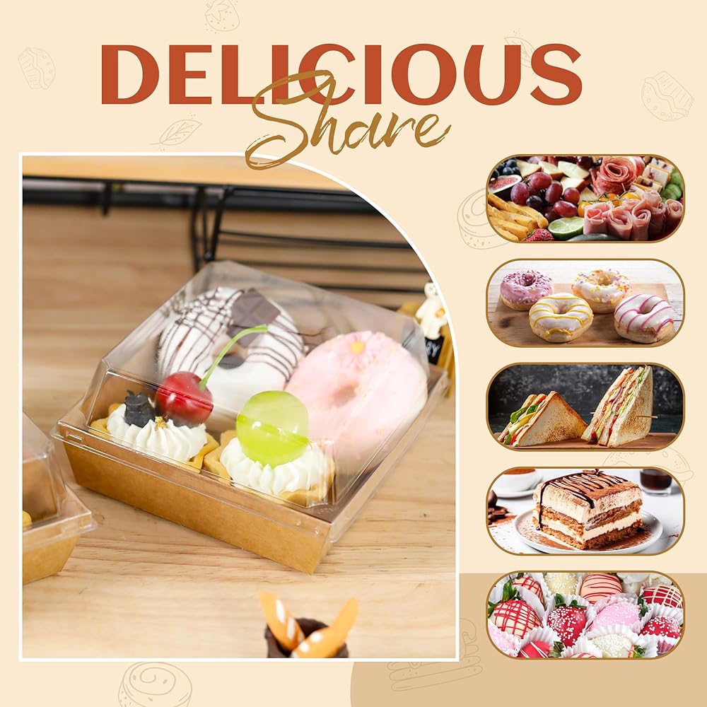 Perfect Size: These small charcuterie boxes are 5.3 "x 4.9" x 2.5 "in size and can hold 4 mini donuts, a burger, or 4 regular sized cupcakes. Cake containers with lids are also suitable for cookies, sushi, sandwiches, and other baked goods and desserts