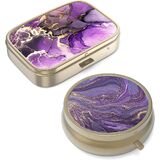 Quality Material: Our elegant pill box is made of quality metal construction with plastic inside divider .They are rugged, not easy to fade or damage, coming with a long service life.There are three separate compartments, this portable pill box can make you use all day.Internal divider keeps your pills or vitamin organized. Fine chrome pill boxes feature a high-gloss image of different fashion pattern,and reliable spring latch clasp to keep your meds safely inside