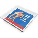 STYLE AT YOUR FINGERTIPS: White dish features image of 1950's hottie hostess smiling for the camera; phrase reads, "Pin This, Bitches"