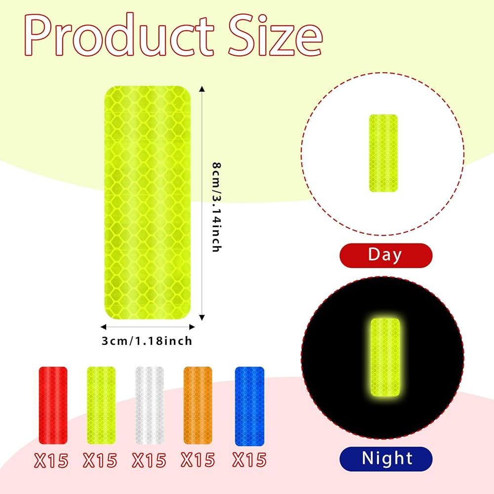75 Pcs Reflective Stickers, Reflective Tape Outdoor Waterproof, High Visibility Reflective Tape, Reflector Tape Waterproof Reflective Stickers, Safety Reflective Tape, 5 Colors, 3.15" X 1.18"