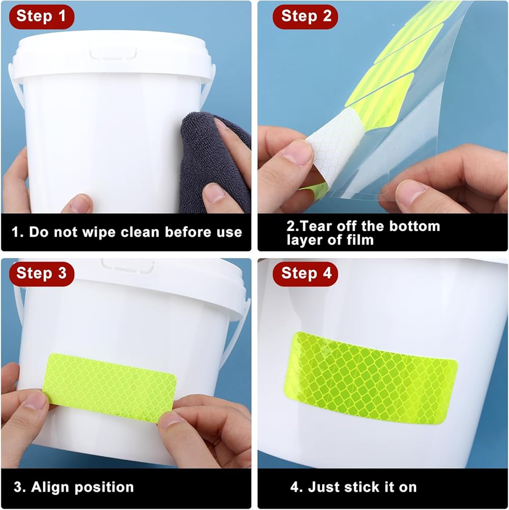 • Easy and Effective Application: Installing these reflective stickers is simple. Clean and dry the surface, peel off the protective film, and press the sticker firmly in place. Their strong adhesive ensures they stick securely without damaging surfaces, making them suitable for helmets, cars, bikes, and more.