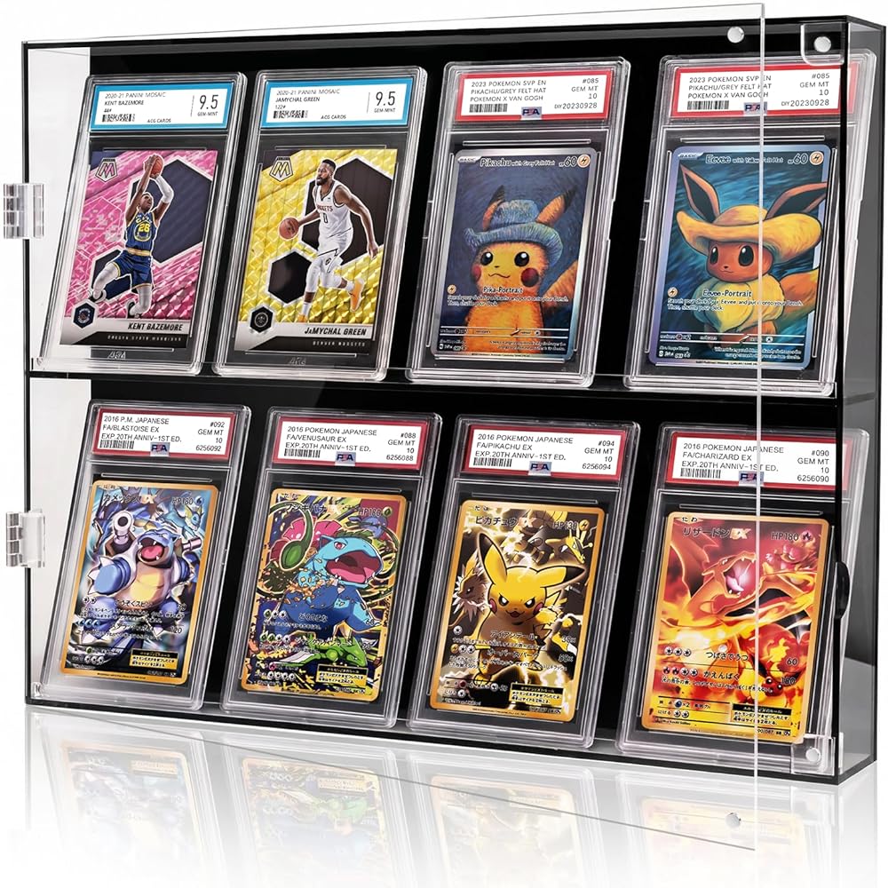 YYDS Acrylic Baseball Card Display Case, Clear View, Display for 8 Graded Cards, Wall Mount with UV Protection, Trading Card Display with Magnetic Door for Sports Cards, TCG, PTCG, and PSA, CGC, MTG