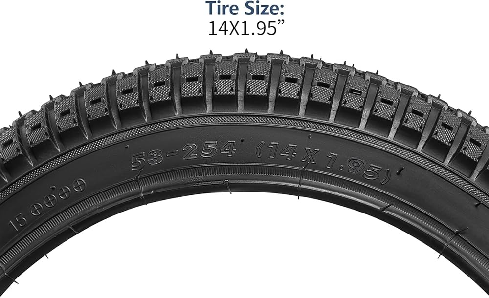 Compatible range: The size of the Bike Tire is 14x1.95, which can match 14x1.75 14x1.90 14x1.95 14x2.0 , which will not affect the use effect. lf you mind that the mode is not completely symmetrical, you can choose to buy other exactly the same model in the shop.