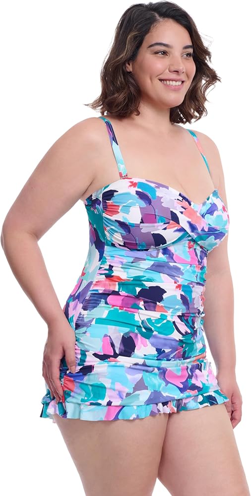 Floral Elegance: Make a statement with our beautifully abstract floral print, which adds a touch of elegance to this classic swimdress. The vibrant design is perfect for those looking to stand out in sophisticated swimwear.