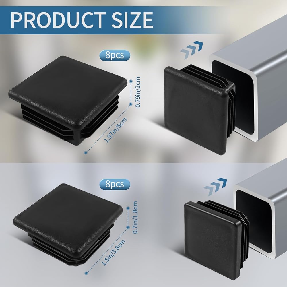 enhance your furniture with our square furniture tube plug, perfect for covering 1 inch and 2 inch square tubing end caps. these square tube inserts end caps ensure a snug fit for your square tubing caps.