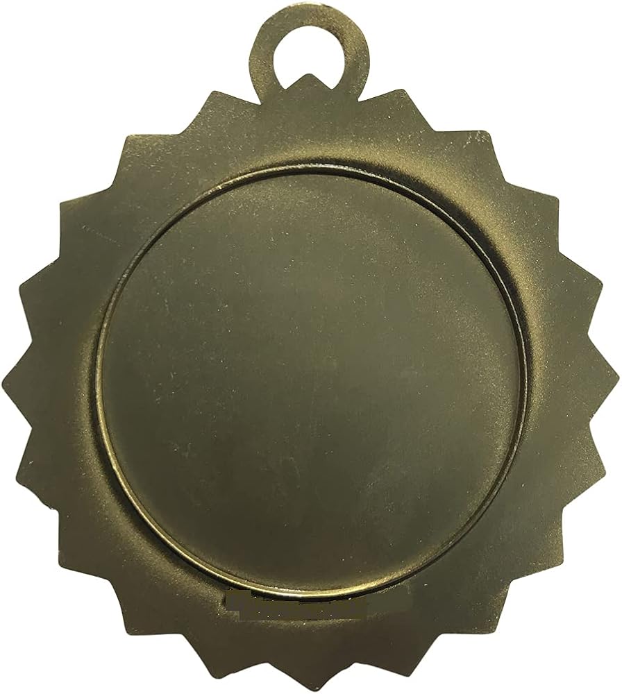 2-1/2" Diameter Antique Gold Die Cast Solid Medal Award with Red White & Blue Neck Ribbon.