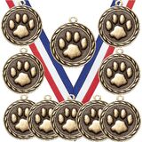 10 PACK: Detailed Large 2" Antique Gold Mascot Paw Print Medals and Ribbons.