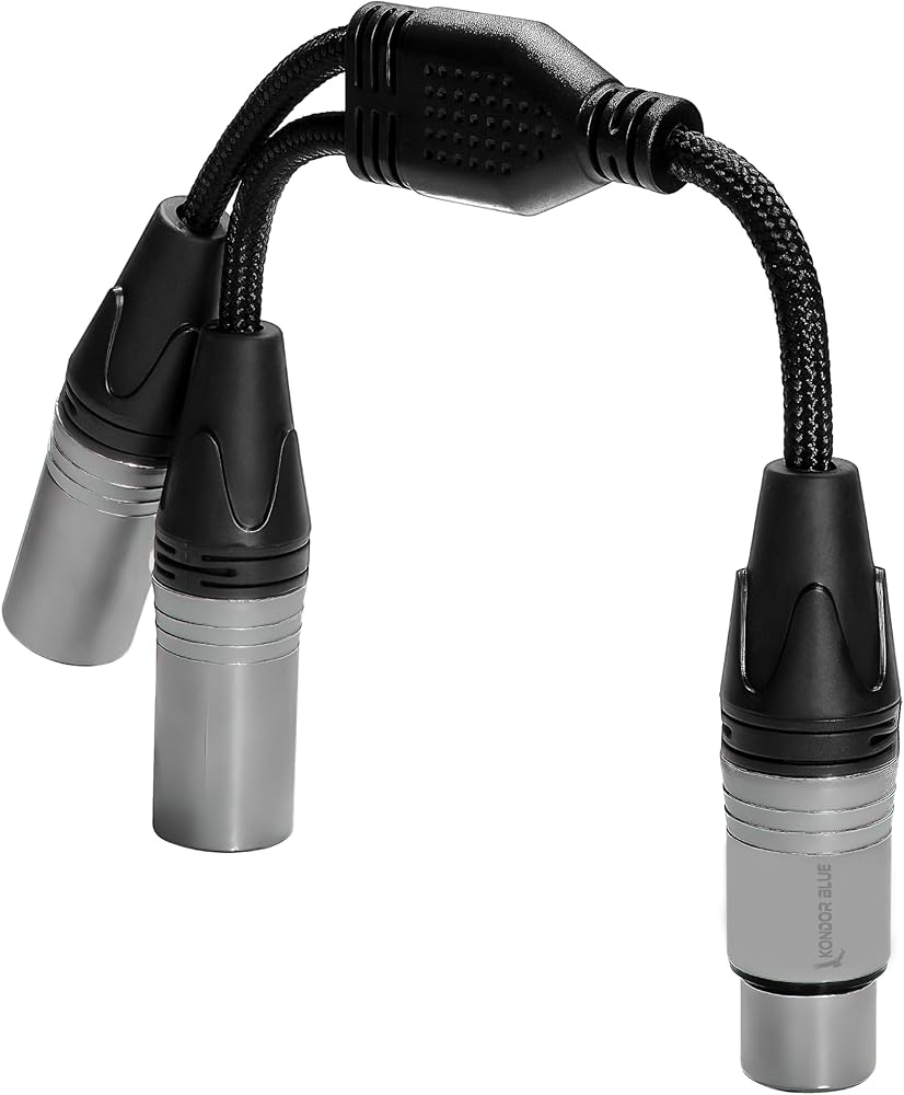 Dual Mini XLR Male to 3.5mm Stereo TRS Right Angle Separate the left and right channels of audio for independent recording compatible with BMPCC 6K Pro/C70/RODE Wireless Go II Length: 16" Reinforced Connectors Lifetime Warranty PRODUCT DESCRIPTION: KONDOR BLUE brings you the highest quality cable lineup on the market! This 16” Dual Mini-XLR to 3.5mm Stereo TRS Channel Splitter allows you to Separate the left and right channels of audio for independent recording. At KONDOR BLUE, we always stand behind our extensive line of premium quality cables with a lifetime warranty. TECH SPECS: Length: 16” Weight: 1.4 oz