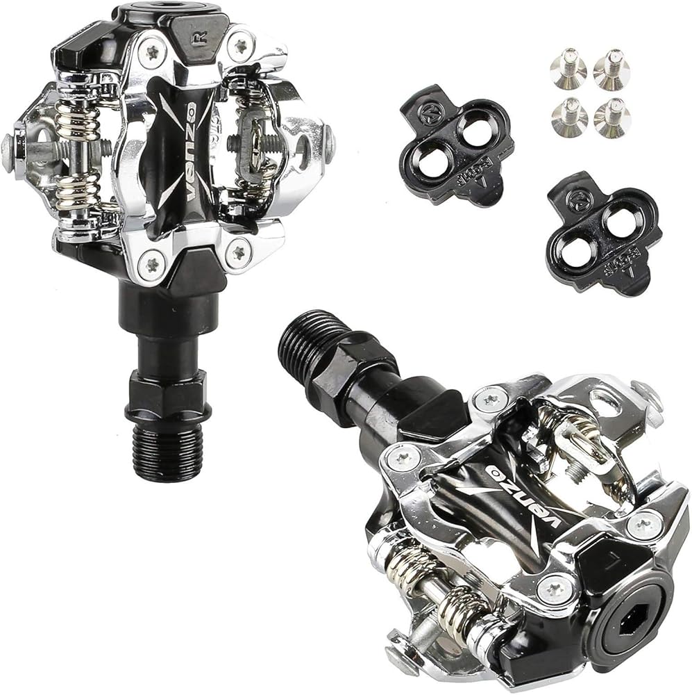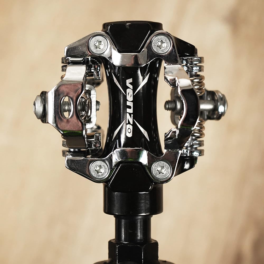 VENZO Compatible with Shimano SPD Mountain Bike CNC Cr-Mo Die-Cast Aluminum Sealed Pedals with Cleats - Dual Platform Clipless Pedals for Mountain Bike Shoes - Easy Clip in & Out