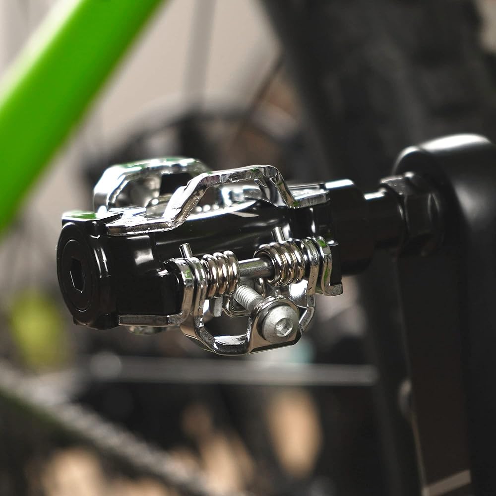 EASY TO CLIP IN & OUT: With the platform at both sides, it is much easier to clip in than normal for Shimano SPD pedals. The pedal is double sided, so you do not need to figure out the right side. The pedals are super-easy to clip out from too.