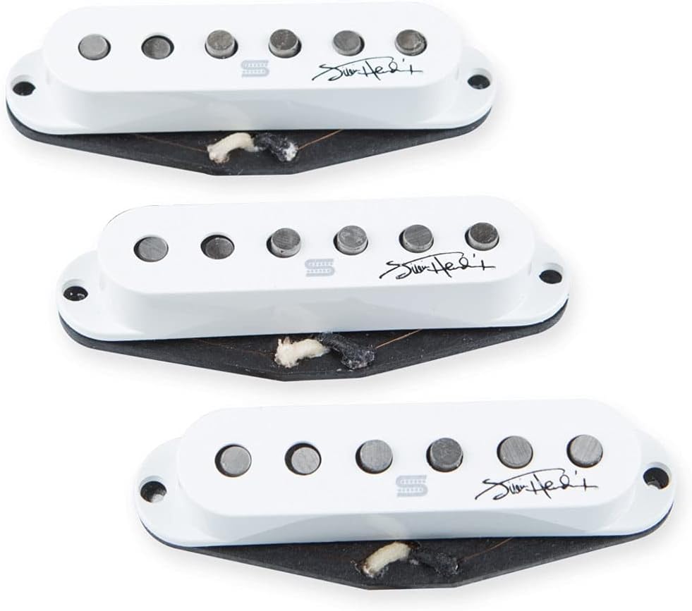 In March 1968 Jimi Hendrix asked Seymour Duncan about pills he had winded, and the rest is history. 50 years later this set recalls Hendrix's legacy; the bridge pickup has a sharp and aggressive attack, the mast is compressed and full, ideal for chords, blues. ; and ultimately play like Jimi; the central pill is the classic strato "Quack! "; with inverted magnets, as if you were left-handed; with commemorative booklet and stickers