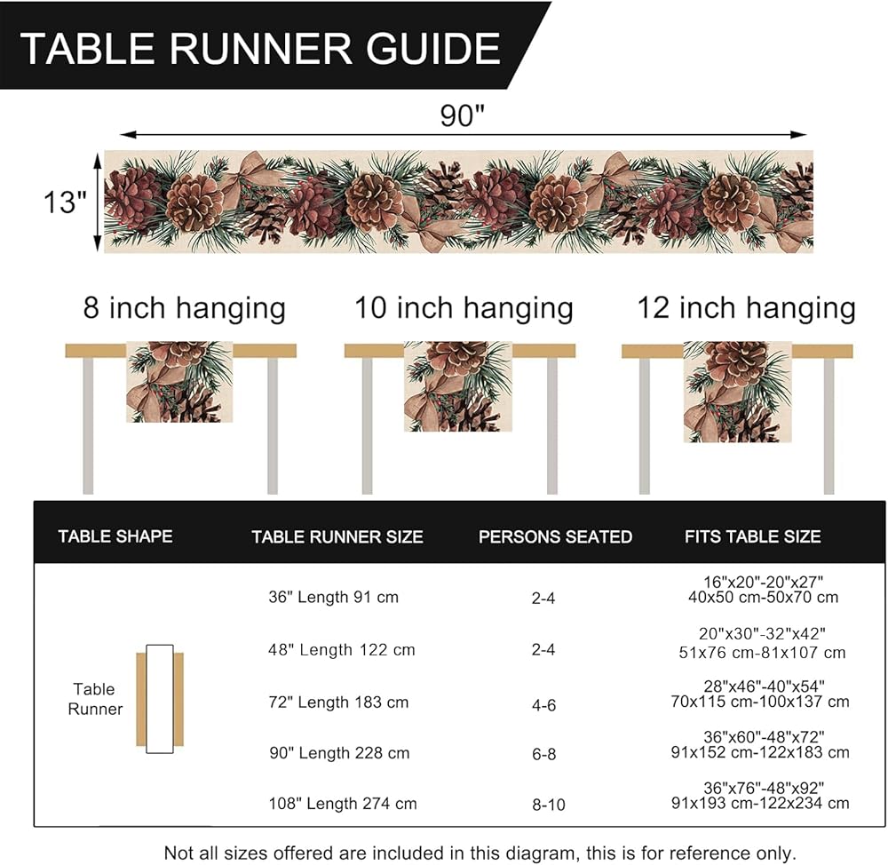 Uniquely Designed Table Runner: Our rustic farmhouse linen tabletop runner adopts the most popular element design nowadays. Use the winter themed table decorations we provide to decorate your coffee table, dining table, buffet table and kitchen to express your positive attitude towards life. Printed with pine cones, pine needles, red berries, bow patterns, our table runner will be the perfect decor for winter, Christmas