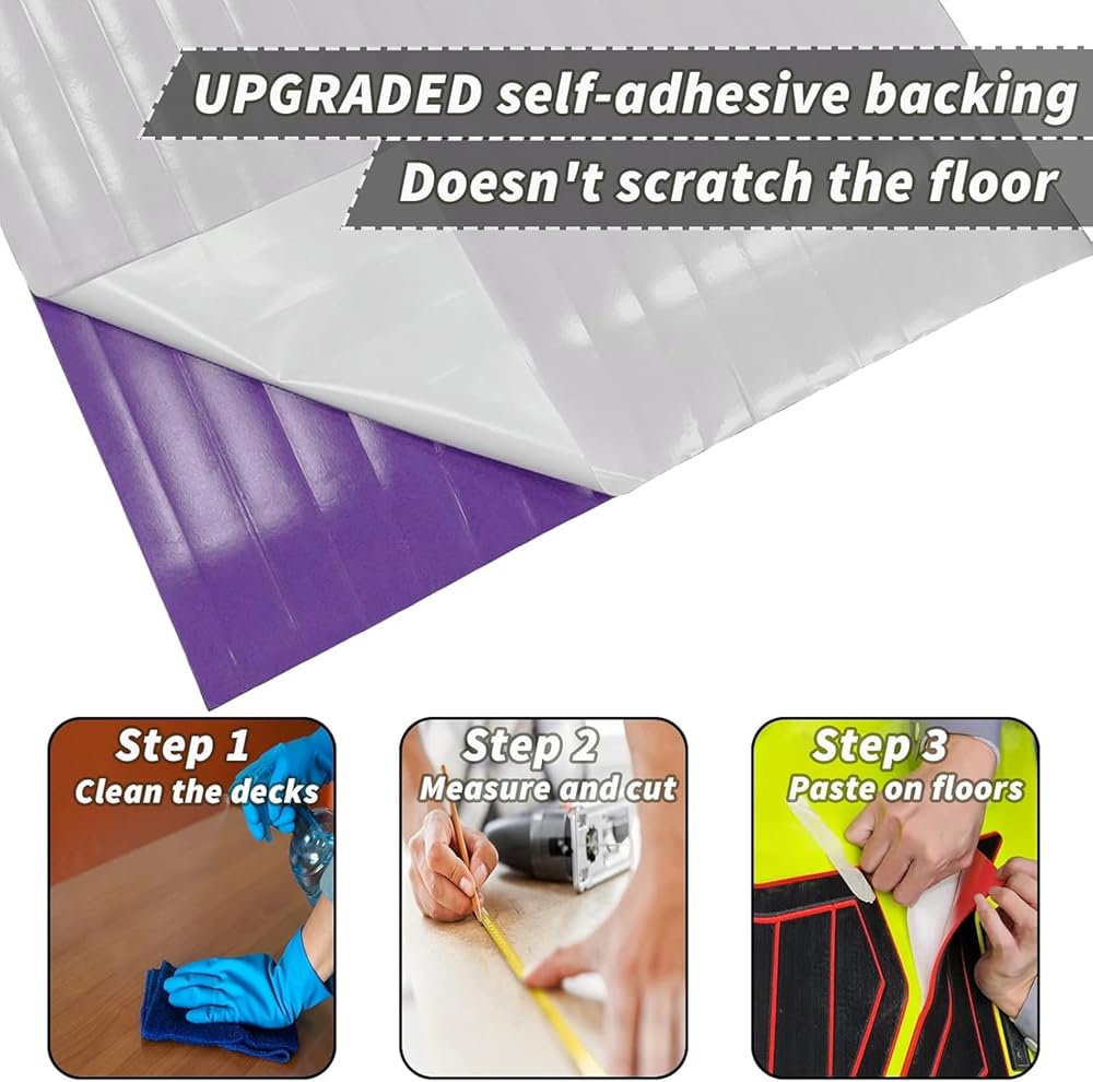 Easy to cut and install: Use tools to cut and trim the boat foam sheet into different shapes to fit your boat floor. Our Eva boat decking foam has strong glue backing that sticks it firmly to the floor, it is more cost-effective than 3M glue. Deep grooves can be easily cut down, peeled, and stuck on the boat to fit nearly any decking surface where non-skid or surface protection is required