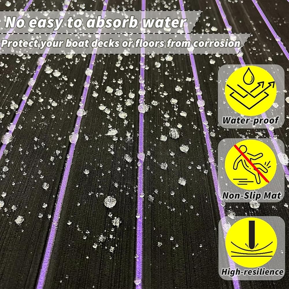 U-grooves design: This faux teak boat flooring EVA foam with deep U-grooves will increase friction to prevent sliding and allow water to run off quickly. This groove of foam boat mat is easy to clean with a broom or vacuum cleaner. Decorating and upgrading your boat with personalized boat flooring carpet