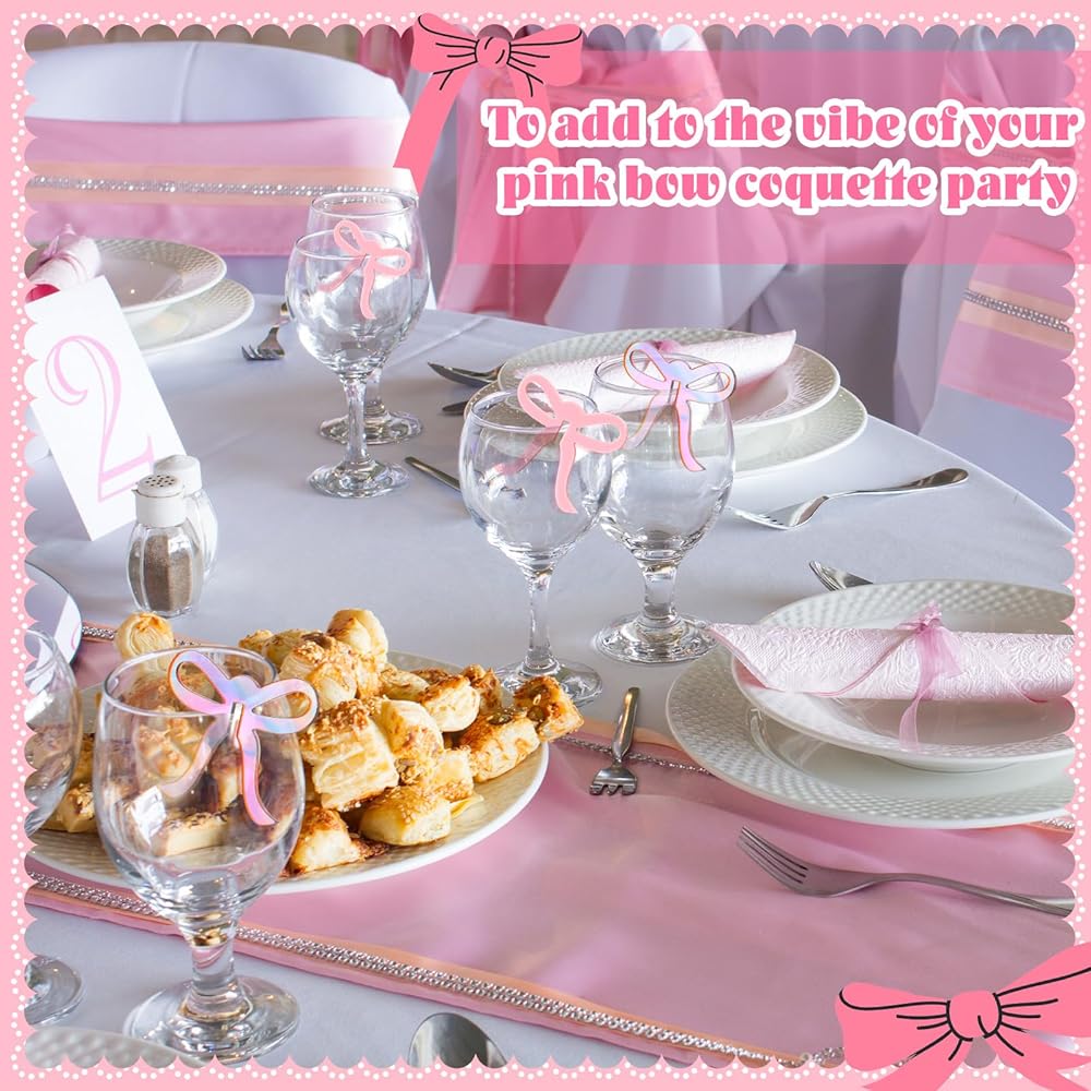 36 Pcs Bow Drink Markers Coquette Wine Glass Charms Acrylic Drink Tags Bowknot Wedding Bow Party Favor for Bachelorette Birthday Cocktail Wedding Bridal Shower Party Decor Accessory