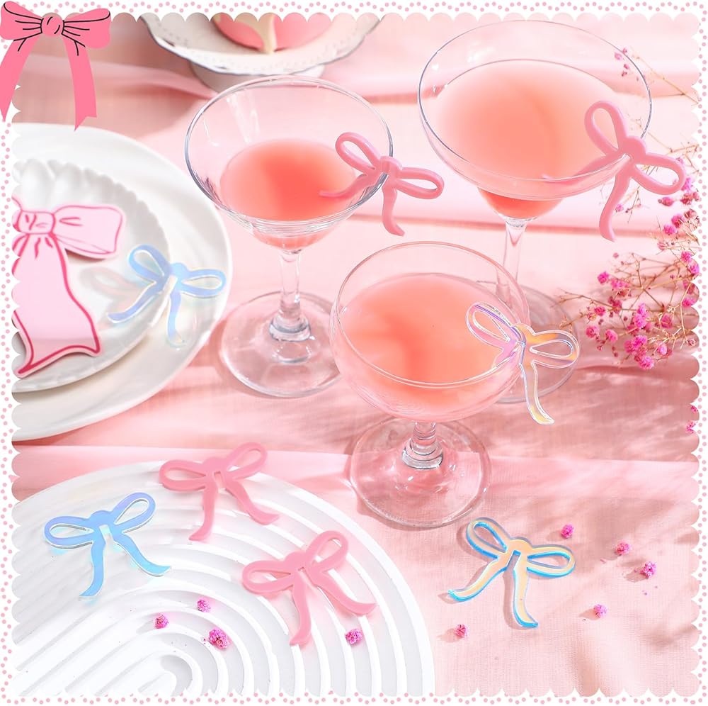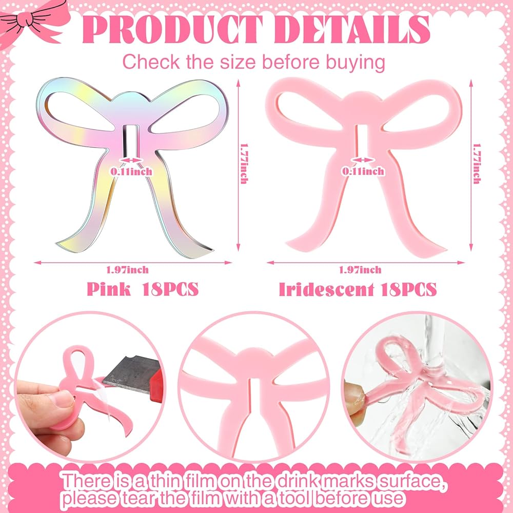• Product Include: we present a generous package incorporating 36 pcs bow drink markers, which has 18 pink bow markers and 18 laser colored bow markers, this bow drink marker is suitable for tying the knot bachelorette party, coquette birthday party, girly ribbon party and bow themed party decorations