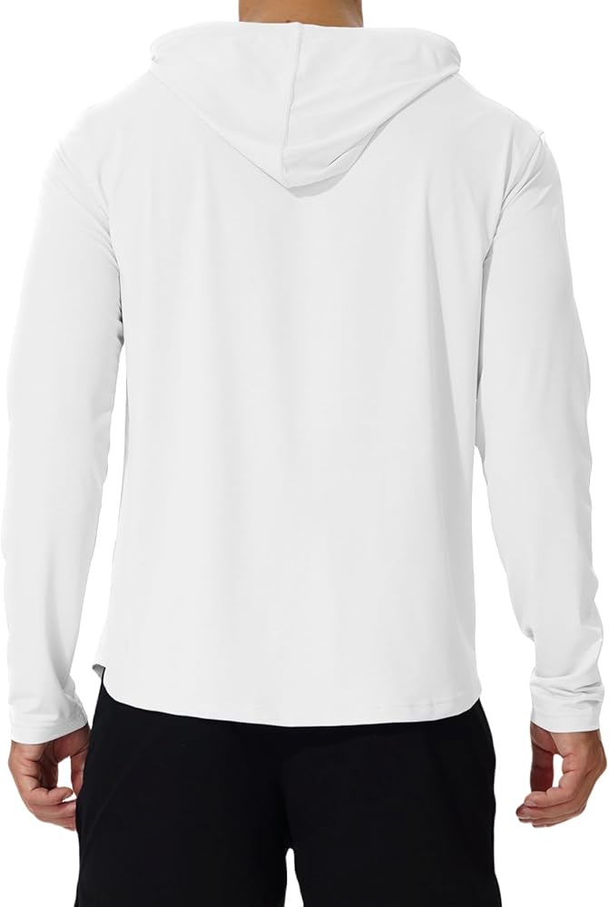 【Stylish Design】Thanks to hoodie design, our men's rash guard shirts preventing your neck form sunburn in the sun, all-round protection. Great for anyone who can't stand the heat, is too lazy for sunscreen, perfect for casual wear & any outdoor activities