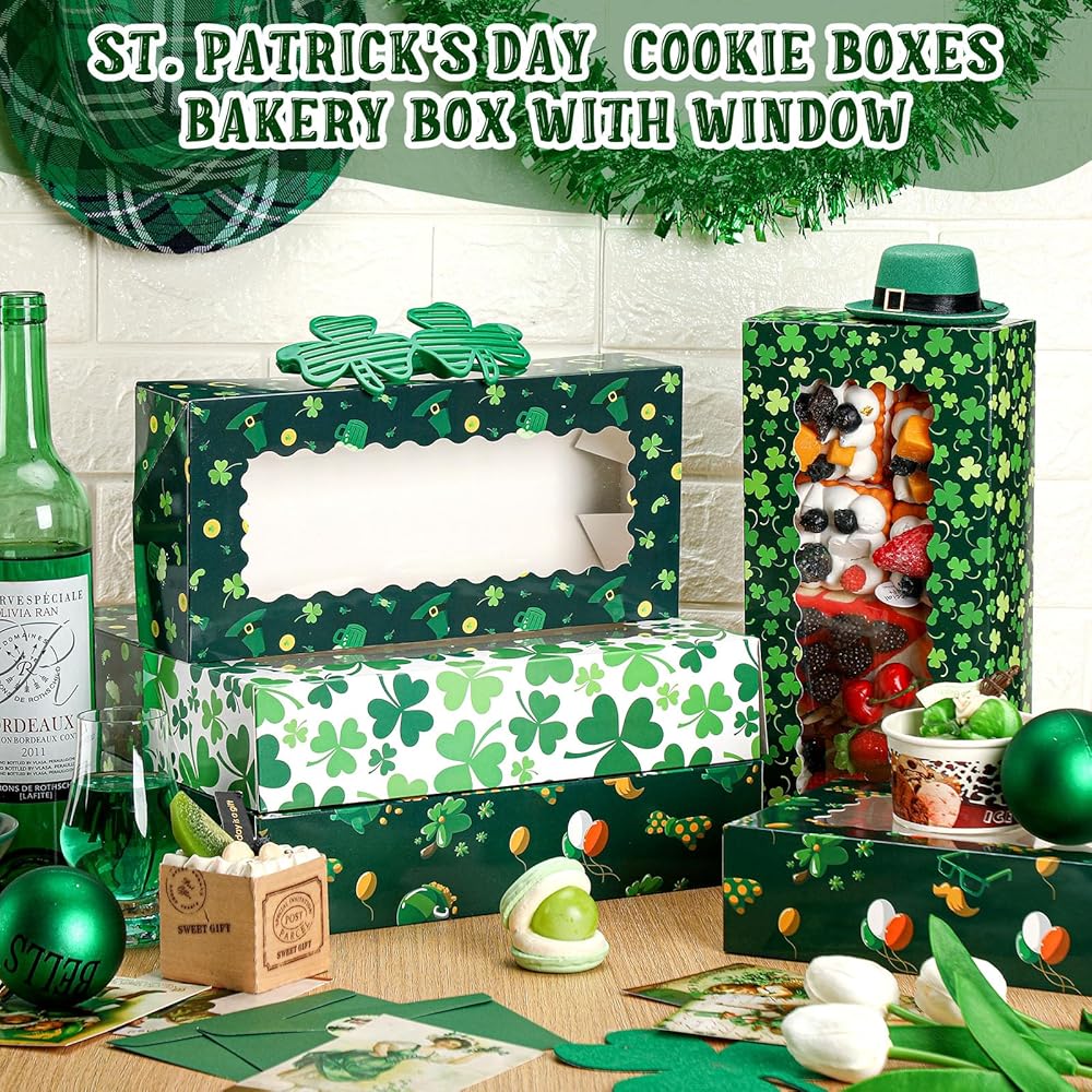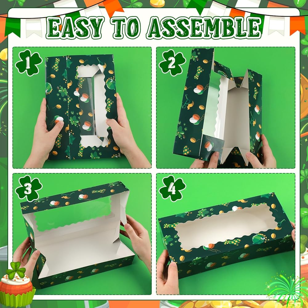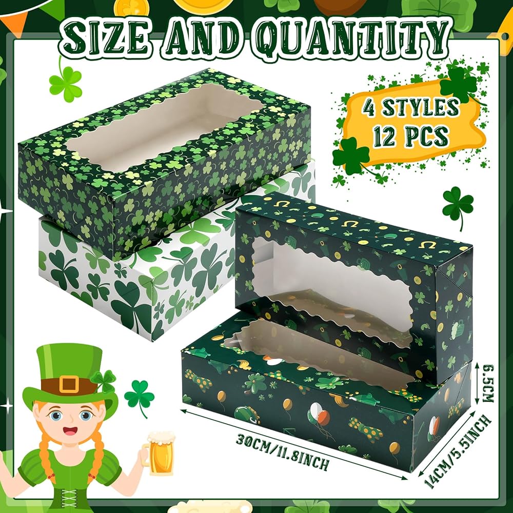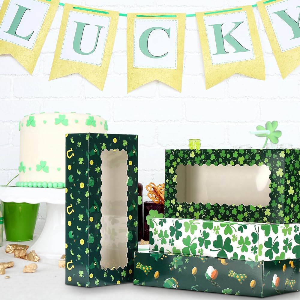 In honor of St. Patrick's Day, the St. Patrick's Day cupcake paper boxes with window are beautifully printed with cute shamrock patterns and other appealing designs. This adds an extra festive touch, making them ideal to decor for your St. Patrick's Day celebration.