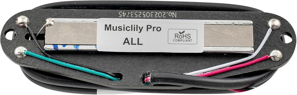 Resistance: 6.2K, inductance: 4.4H. Tolerance: 0.5K for single coil, 1K for humbucker. The resistance value will change according to temperature and humidity. Usually, the resistance value will be high in hot and dry weather, be low in cold and wet weather. In extreme cases, the resistance value tolerance will be greater. Magnet: Alnico 5; PC bobbin; fiber baseplate, wiring: 4P Shield