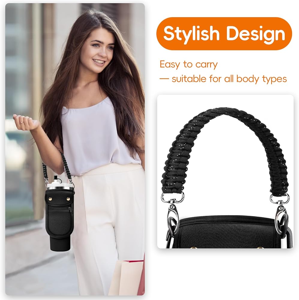 4 Ways to Carry: Comes with a detachable paracord handle and an adjustable shoulder strap, offering various carrying options. You can use it as a crossbody bag, shoulder bag, waist bag, or handbag, making it convenient to carry your tumbler on the go