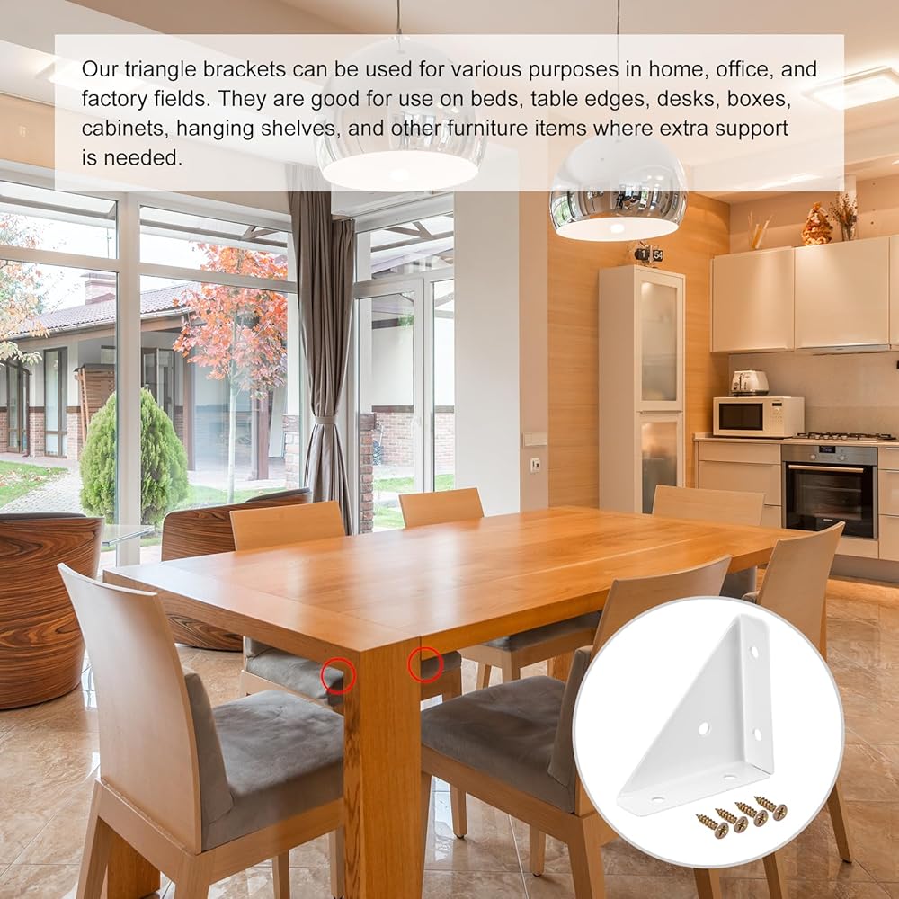 Wide Application - Our triangle brackets can be used for various purposes in home, office, and factory field. They are perfect for use on beds, table edges, desks, boxes, cabinets, hanging shelves, and other furniture items where extra support is needed.