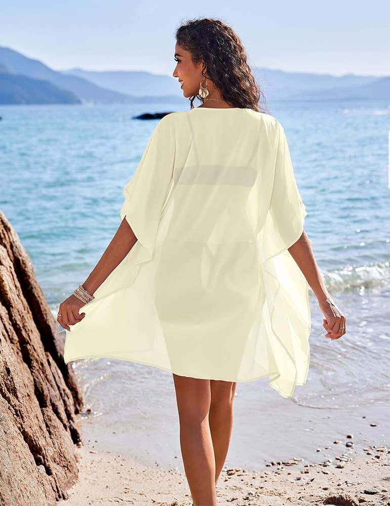 Features: The design of the pool cover ups for women with a V-neck, butterfly sleeves, and side slits breaks traditional impressions and creates a relaxed and comfortable appearance