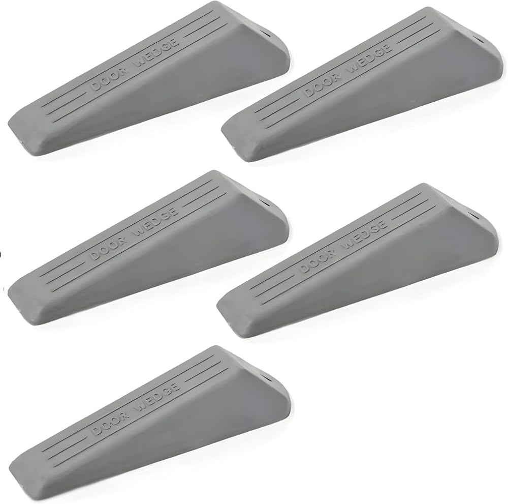 Door Stoppers for Bottom of Door, 5 Pack Heavy Duty Premium Rubber Door Draft Stopper Wedge, Non-Slip Sturdy Stackable Door Stop for Carpets, Tiles, Concrete, Wood Floors, Commercial & Home Use (Grey)