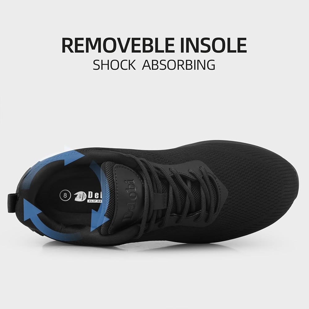 SHOCK-ABSORBING MIDSOLE: The midsole of these men's slip-resistant sneakers is made from soft, resilient materials, providing shock absorption. The removable, flexible insoles also offer some support, making them a great choice for those who stand or walk for long periods.