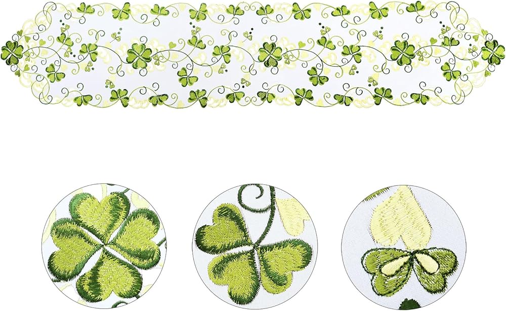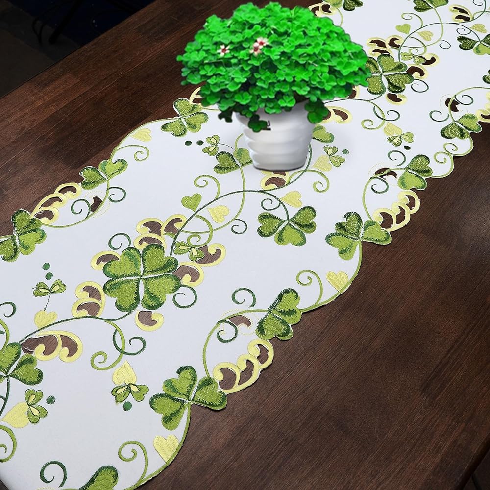 Grelucgo Embroidered Decorative Shamrock Table Runner for St. Patrick's Day (14x35 inches)