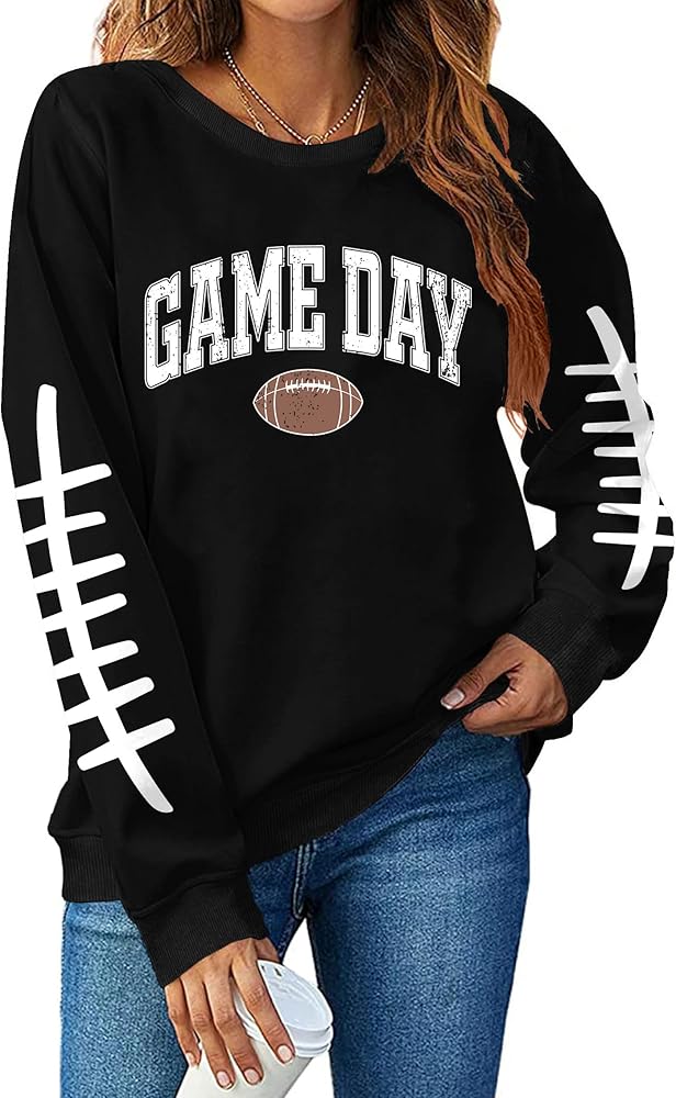Women Game Day Sweatshirt Football Fan Game Day Shirt Football Season Shirts Game Day Letter Print Football Graphic Long Sleeve Casual Pullover Tops