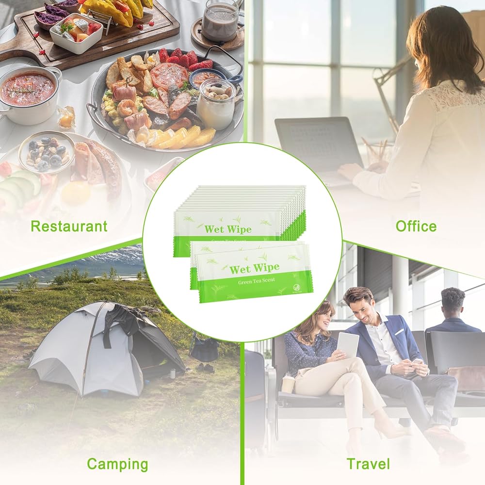 MULTIPLE APPLICATIONS: Wet wipes individually wrapped are great for cleaning hands and face in restaurants, and also for outdoor weddings, for guests. Individual wet wipes packets are suitable for catering, high-speed trains, foot baths, business meetings, restaurants, fast food takeaways, and hotels