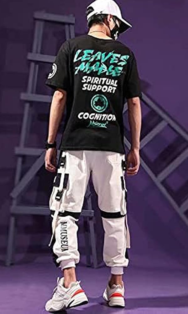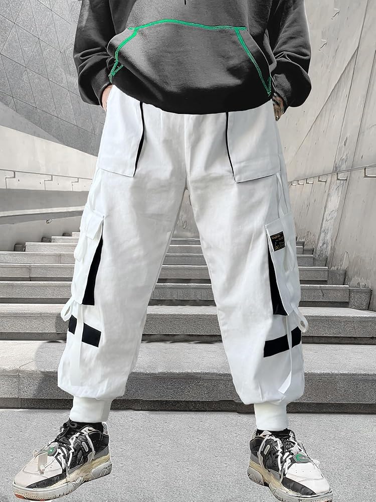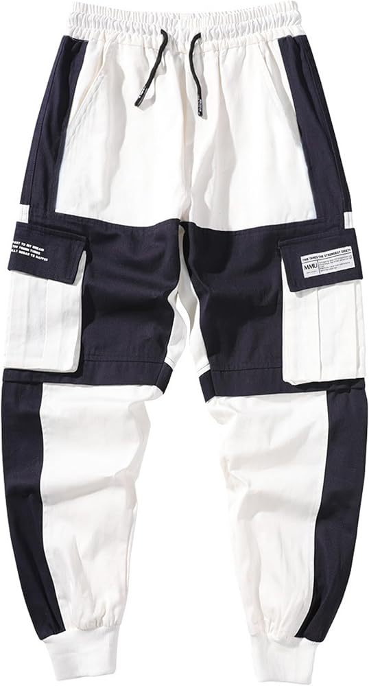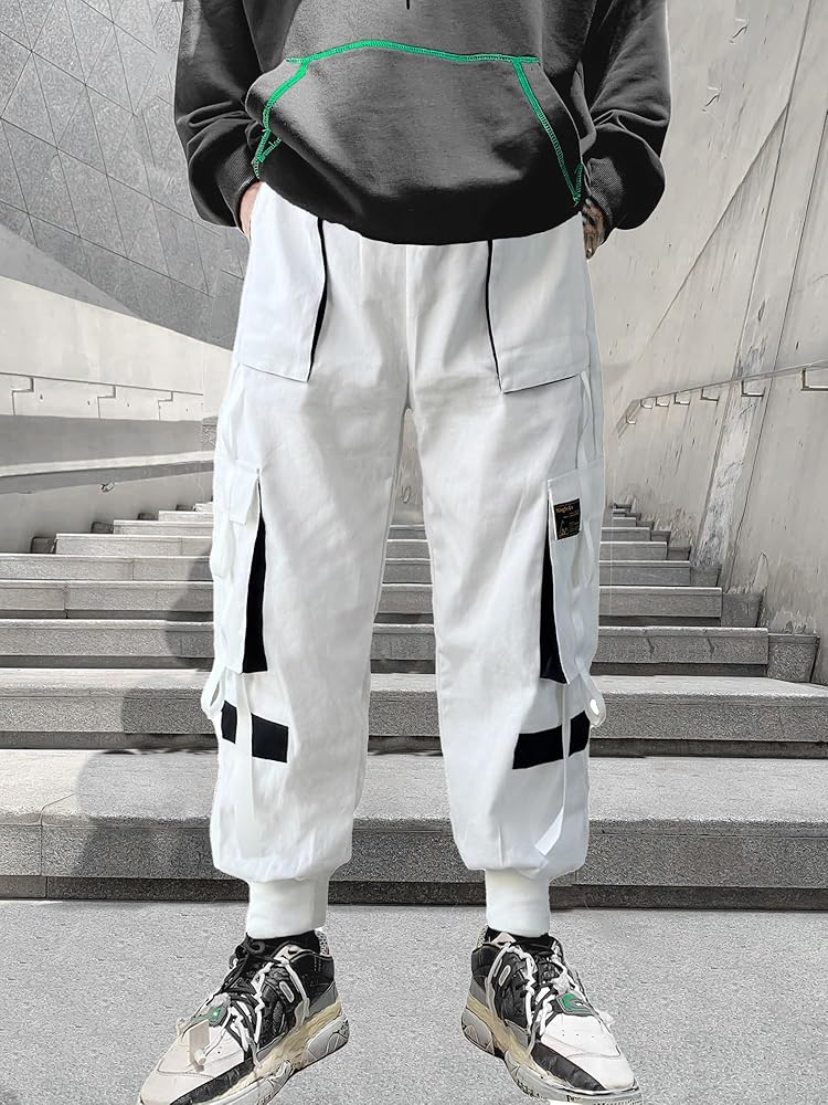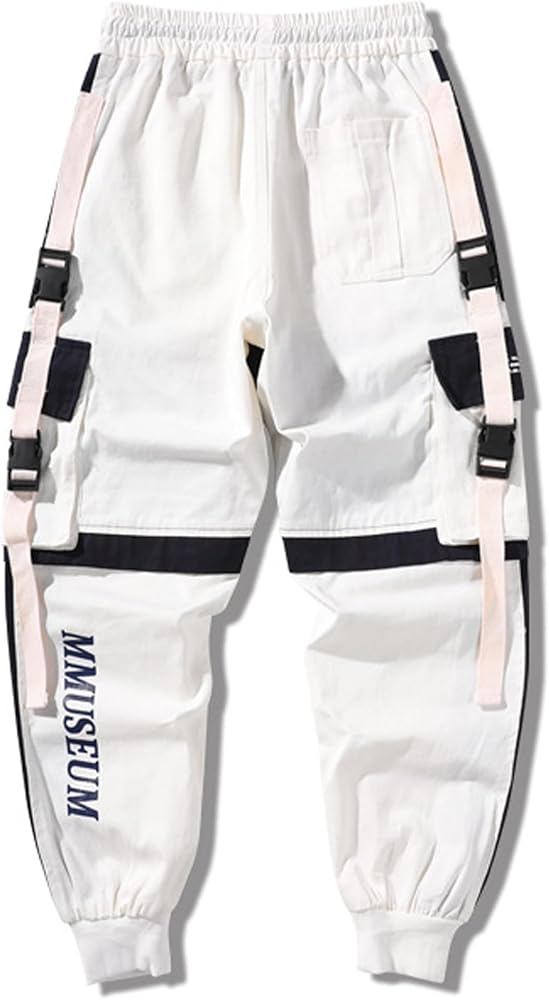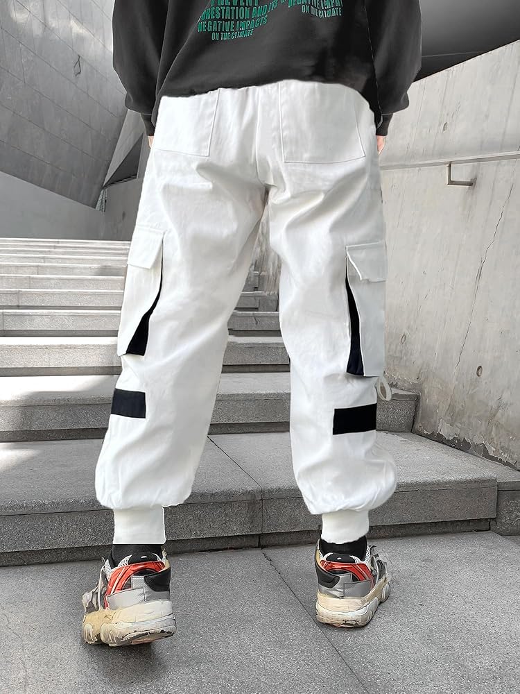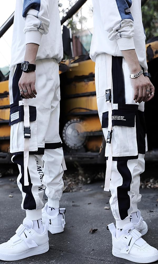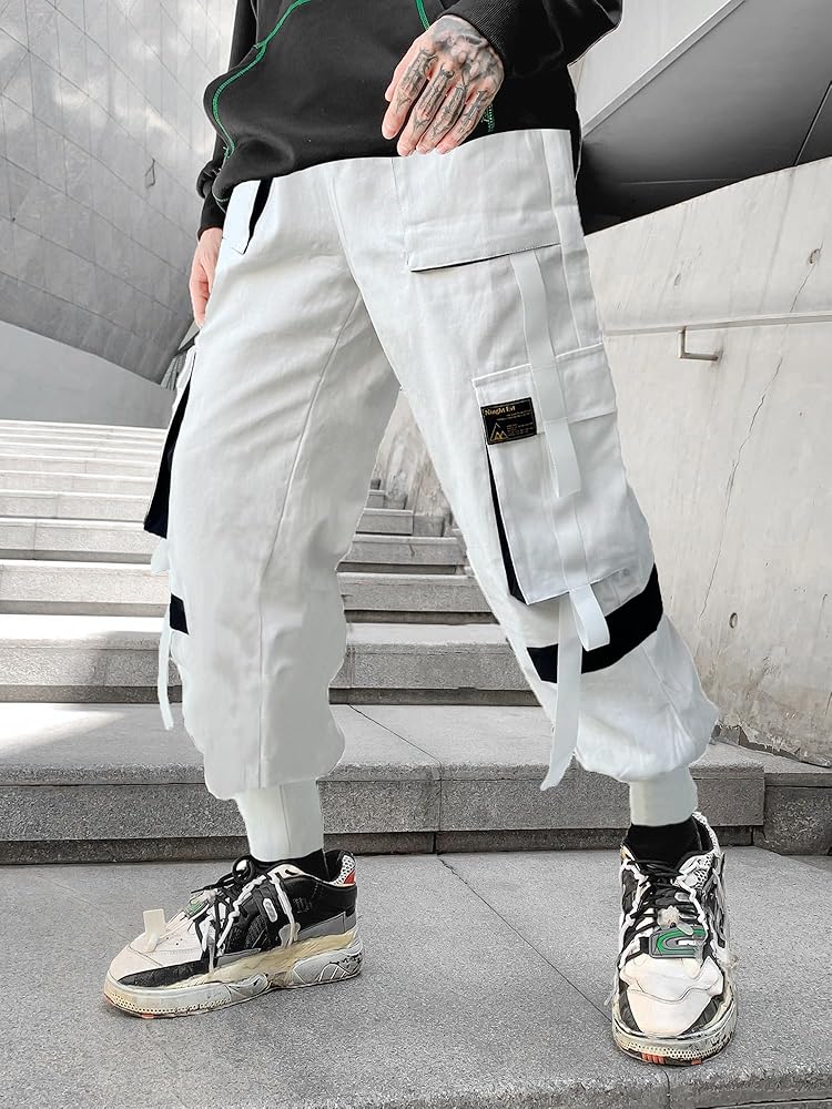 Ambcol Men's Jogger Pants Punk Cargo Baggy Techwear Hip Hop Harem Pants Streetwear Tactical Track Pants Black White