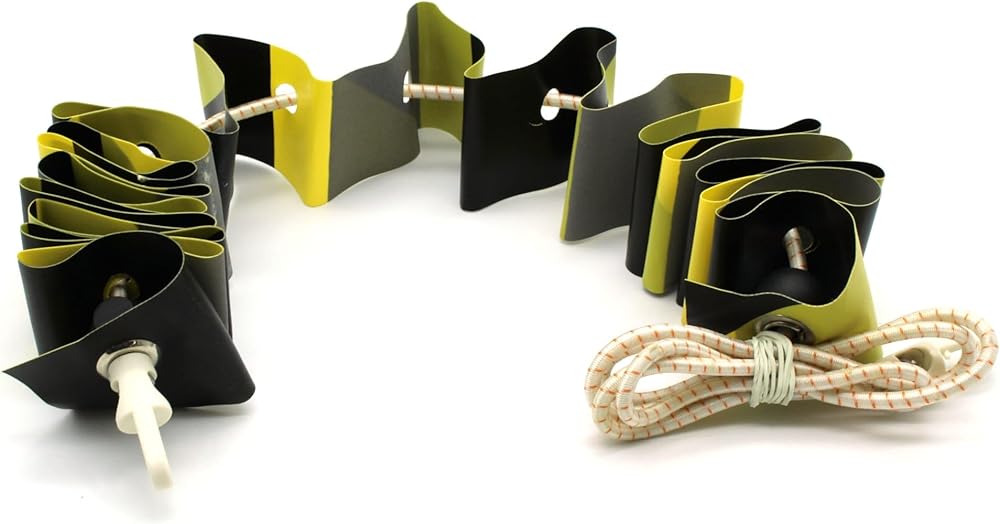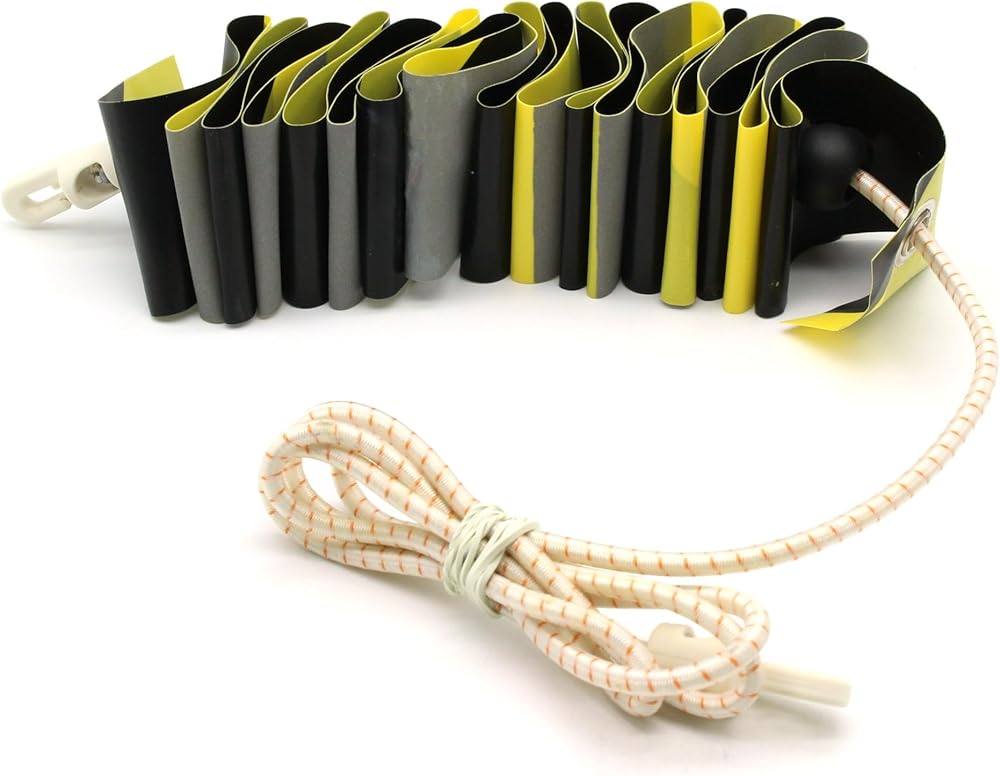 FEATURES: Hi-vis day pattern on one side, reflective night pattern on the other. Elastic allows it to expand and stretch between 2-4 meters in total length. The shock absoring and wind resistant properties make it perfect for any and all environments. Easily fastened to anchor points or each other. Reinforced PVC-based double-sided warning tape.